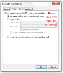 Ensure that “Require logon using Secure Password Authentication (SPA)” is unchecked. We have a secure mechanism in place but we do not use SPA.
